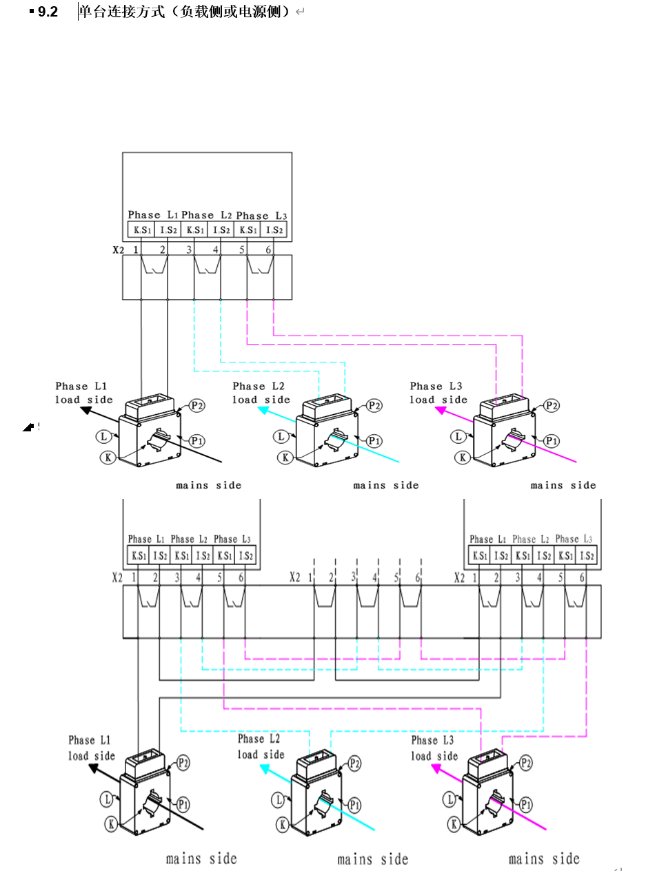 注意:當多臺并聯(lián)時,電流互感器必須安裝在濾波器的負載側(cè)。