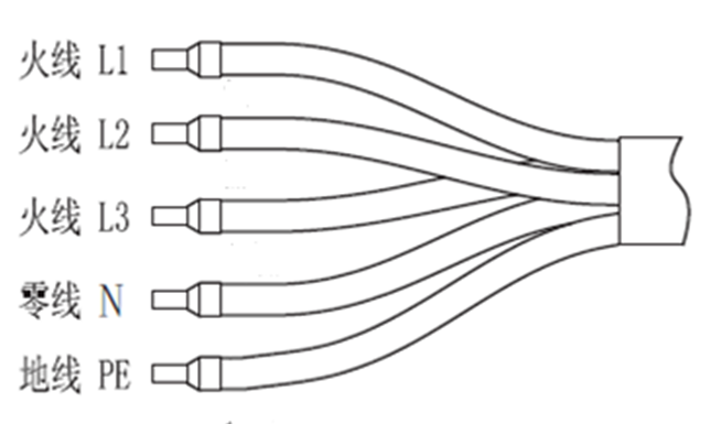 交流輸入線使用 3Φ5W,火線L1~3,零線N及地線PE,要求采用不小于2.5平規(guī)格電纜