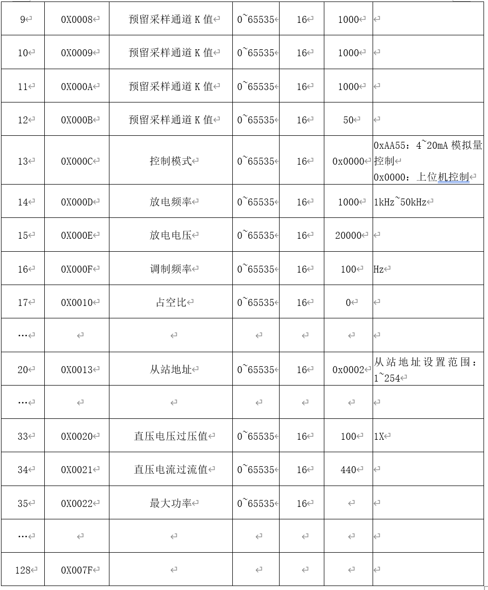 ??4-20mA對(duì)應(yīng)啟停和0~2700w放電功率, 5mA為放電啟停門限,即4-5mA電源關(guān)閉,5-20mA對(duì)應(yīng)0~2700W放電功率